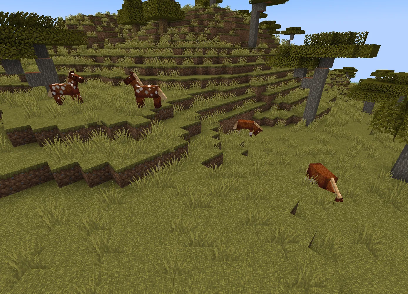 - Равнины: Этот биом идеально подходит для поиска лошадей.